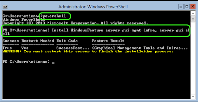 Install-WindowsFeature Server-Gui-Shell, Server-Gui-Mgmt-Infra –Restart
